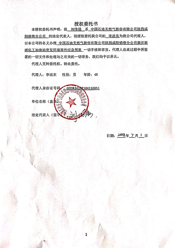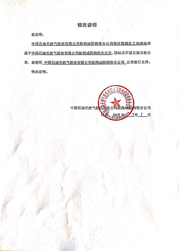 关于2018年9月7日中国石油天然气股份有限公司陕西咸阳销售分公司秦汉新城化工区加油站