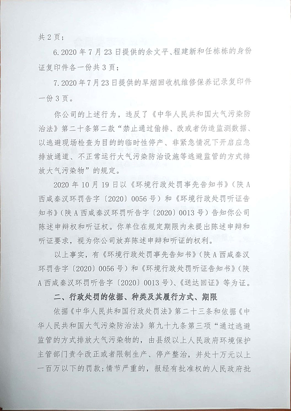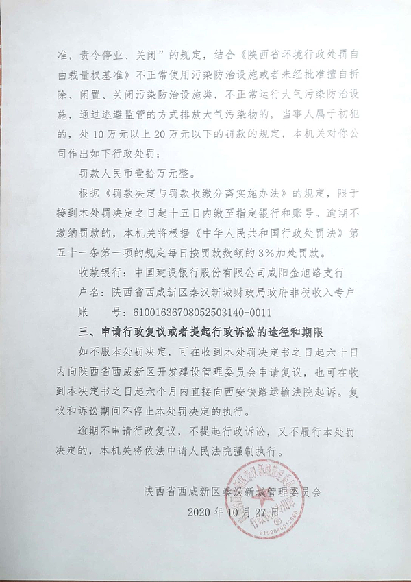 咸阳九冶钢结构有限公司环境行政处罚决定书