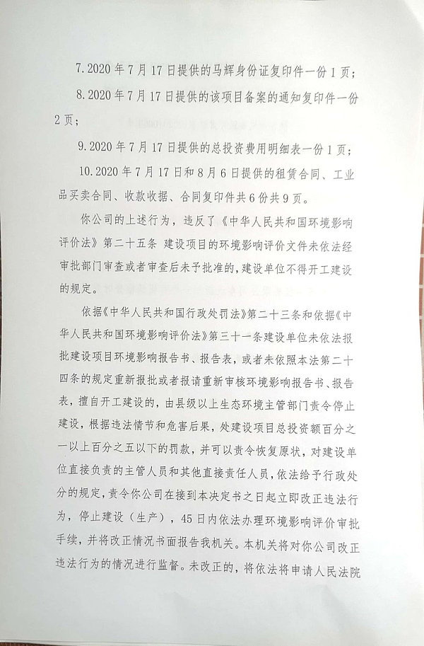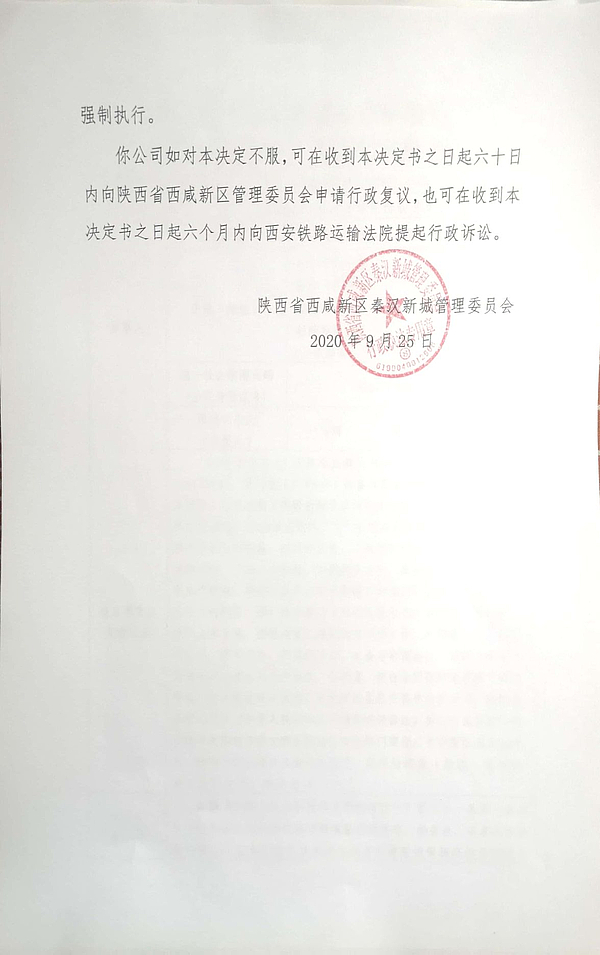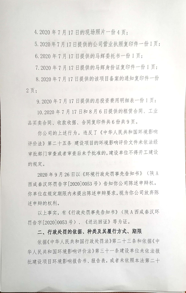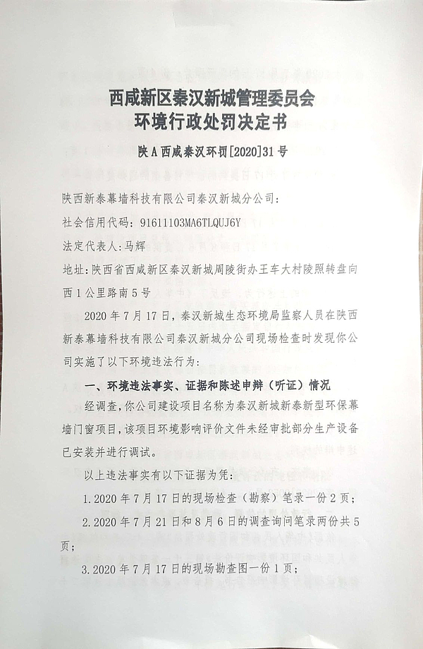 陕西新泰幕墙科技有限公司秦汉新城分公司责令改正环境违法行为决定书和环境行政处罚决定书