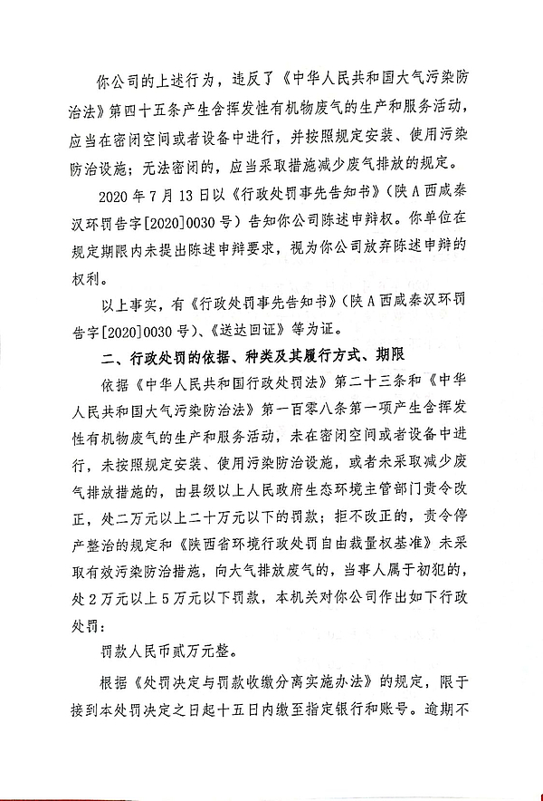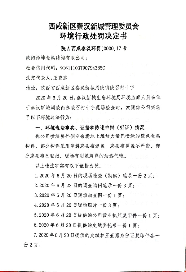 咸阳泽坤金属结构有限公司环境行政处罚决定书