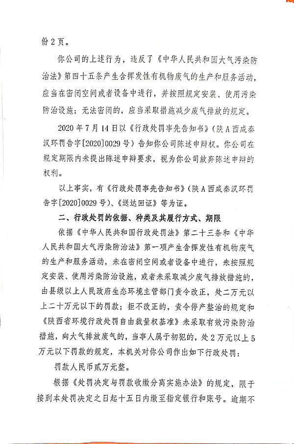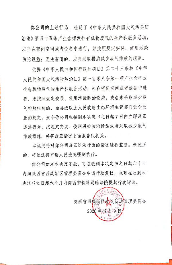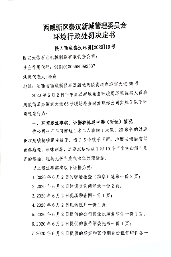 西安天佑石油机械制造有限责任公司责令改正环境违法行为决定书和环境行政处罚决定书