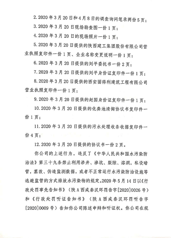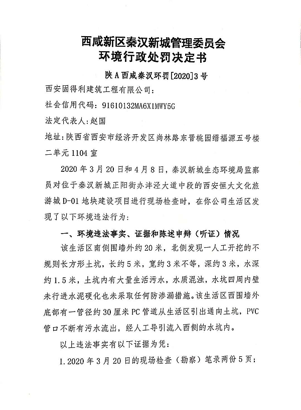 西安固得利建筑工程有限公司环境行政处罚决定书