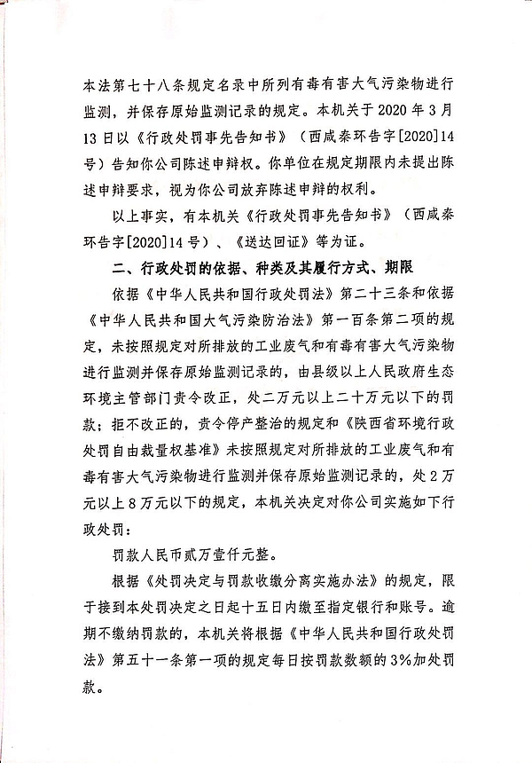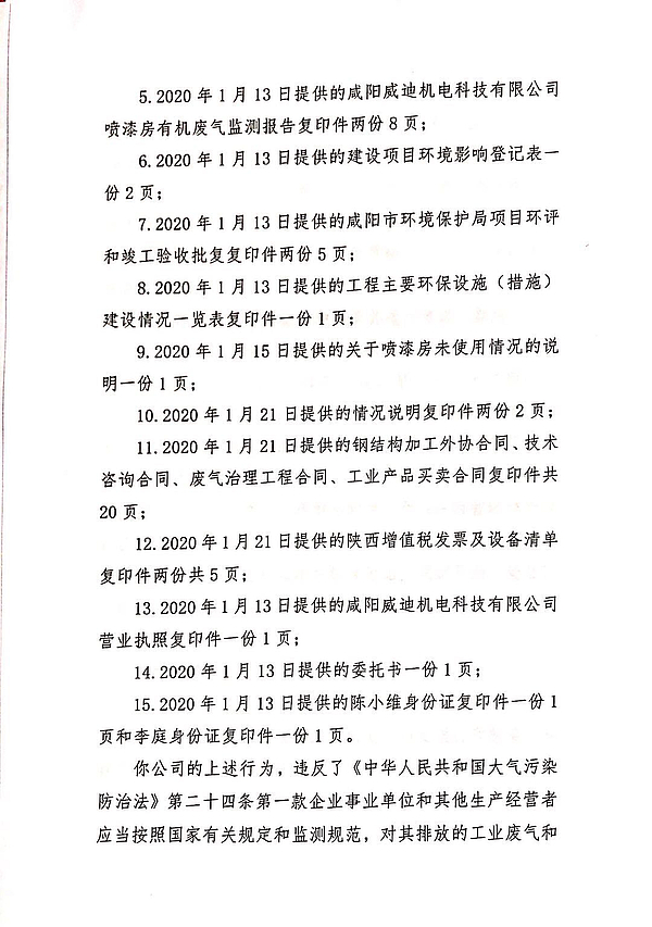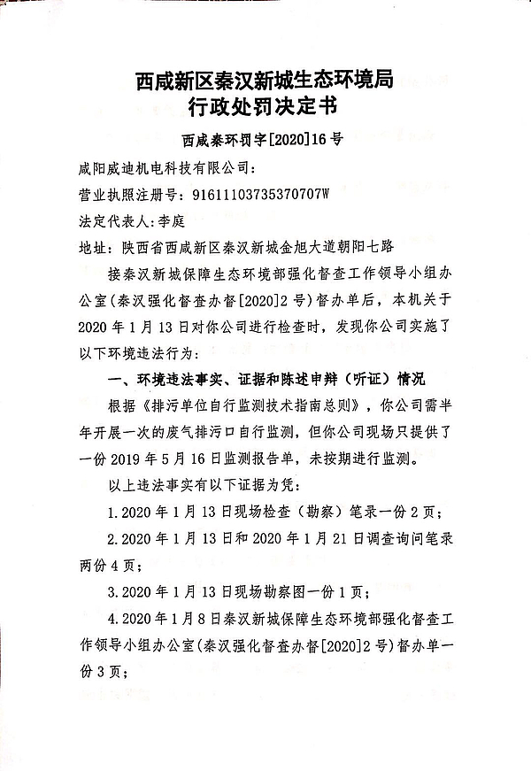 咸阳威迪机电科技有限公司行政处罚决定书
