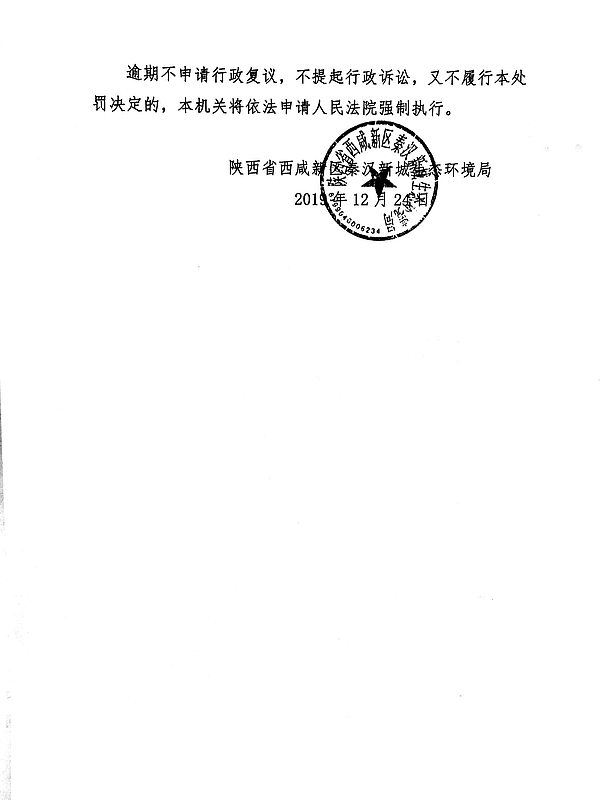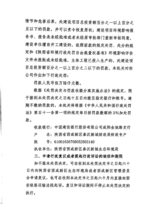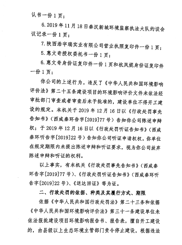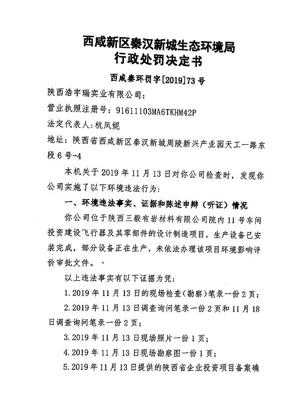 陕西浩宇瑞实业有限公司行政处罚决定书