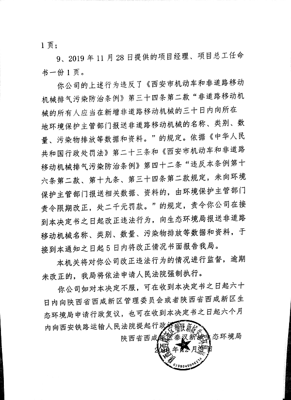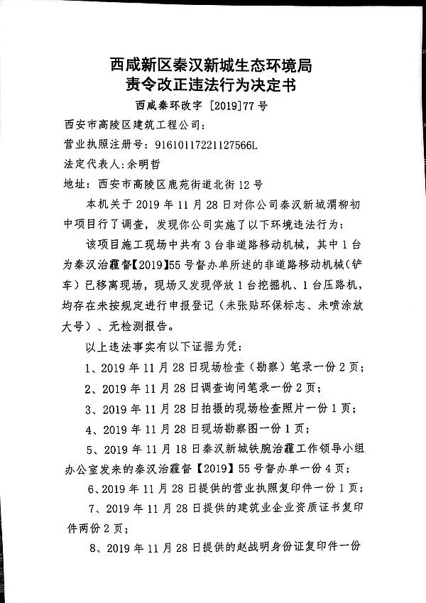 西安市高陵区建筑工程公司责令改正违法行为决定书