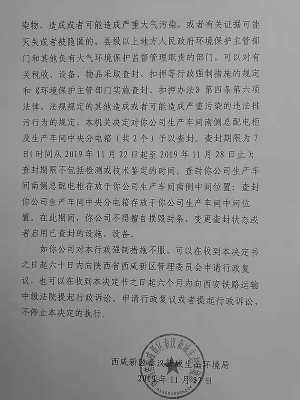 咸阳盛阳钢结构工程有限公司查封(扣押)决定书