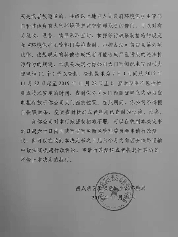 秦汉新城康顺金冷机械厂查封(扣押)决定书