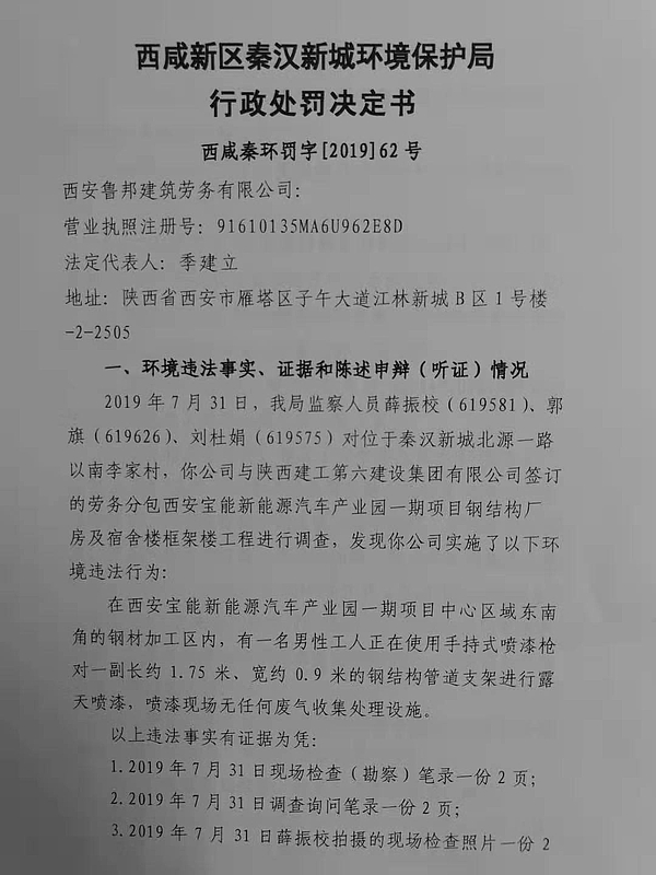 西安鲁邦建筑劳务有限公司行政处罚决定书