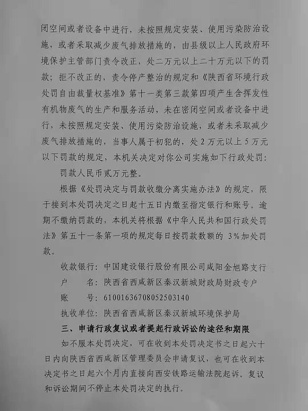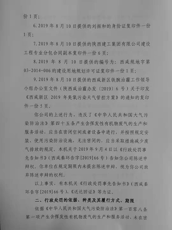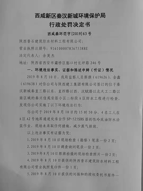 陕西普石建筑防水材料工程有限公司行政处罚决定书