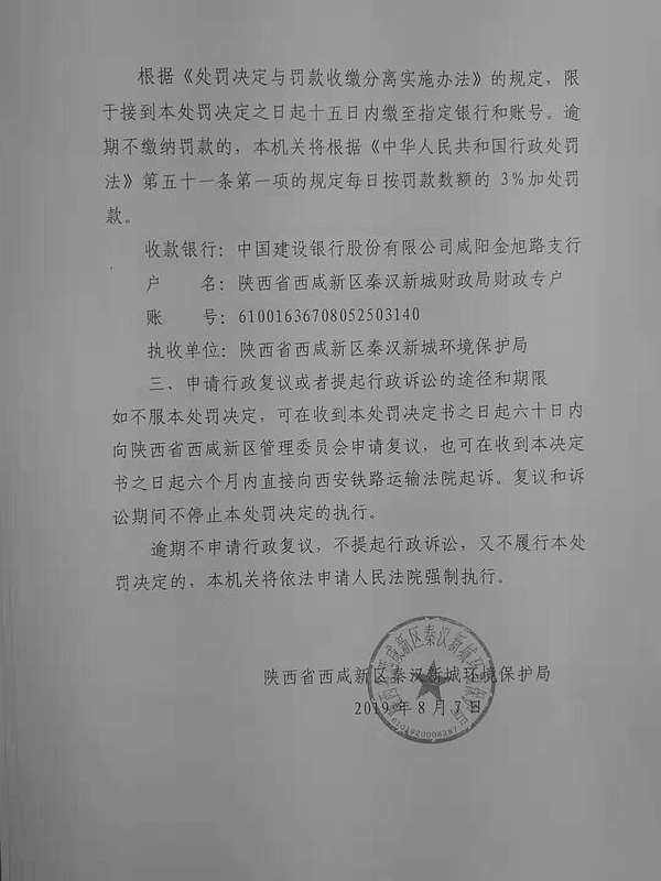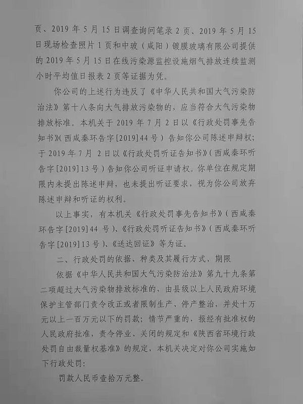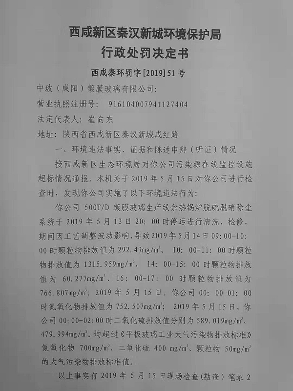 中玻(咸阳)镀膜玻璃有限公司行政处罚决定书