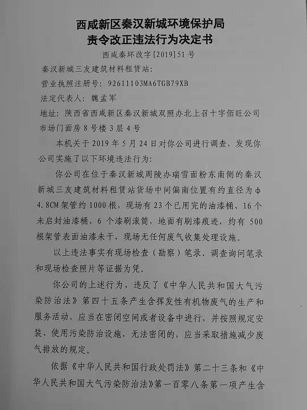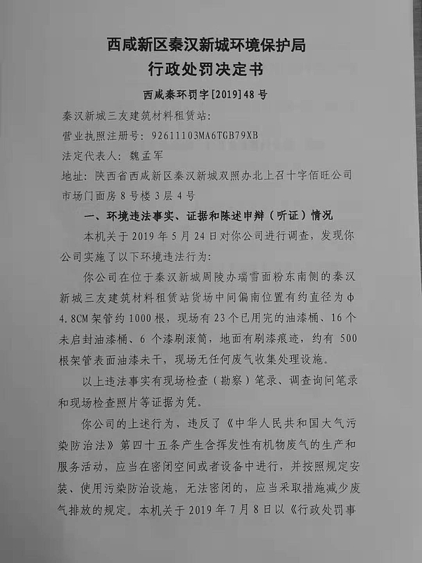 秦汉新城三友建筑材料租赁站行政处罚决定书
