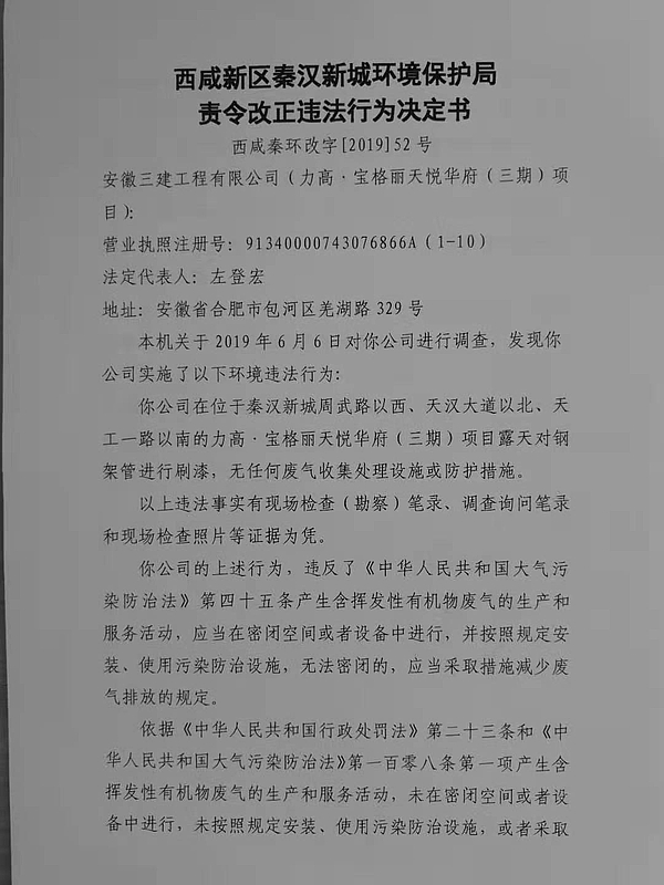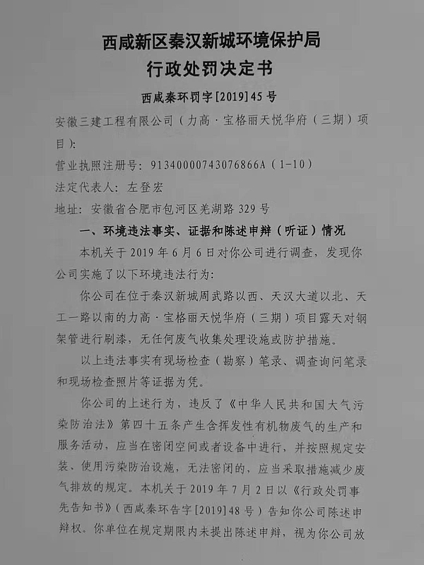 安徽三建工程有限公司(力高.宝格丽三期)行政处罚决定书