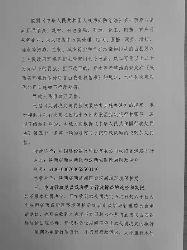 大唐陕西发电有限公司渭河热电厂行政处罚决定书