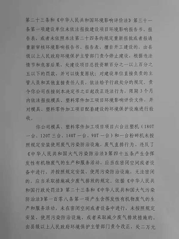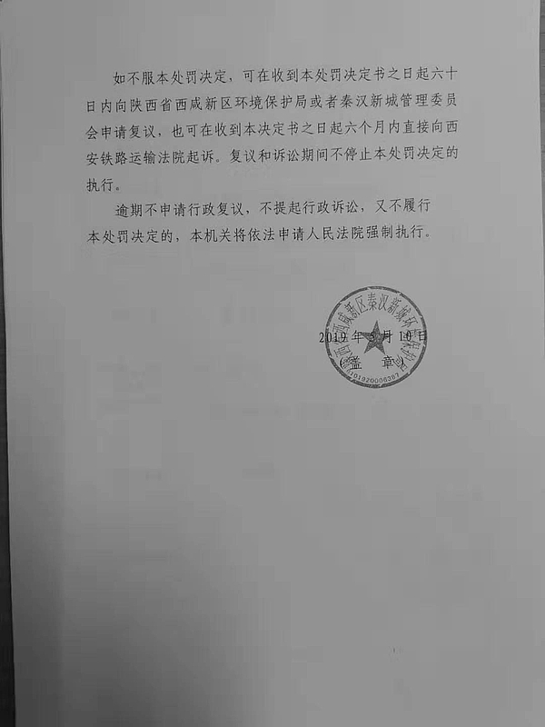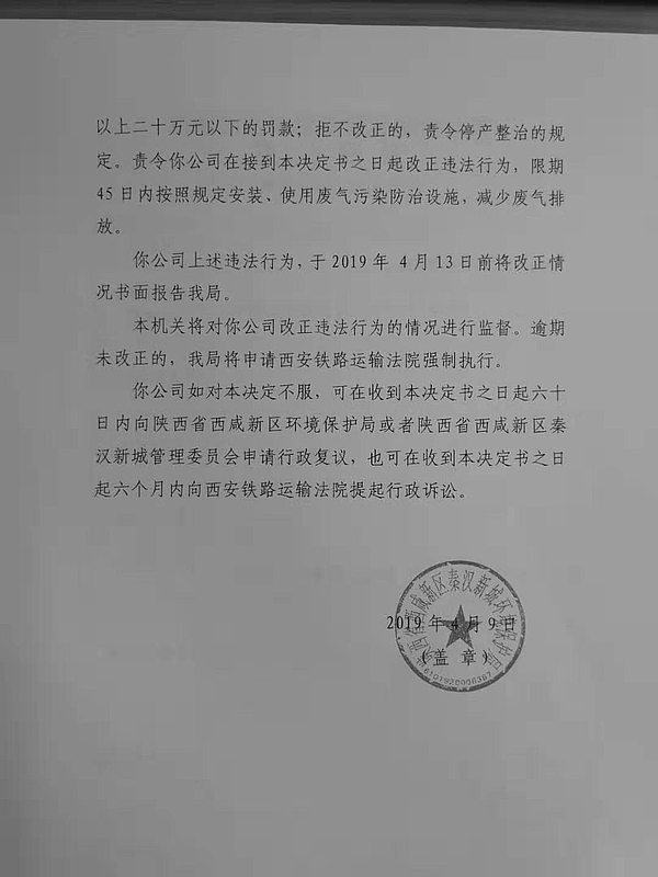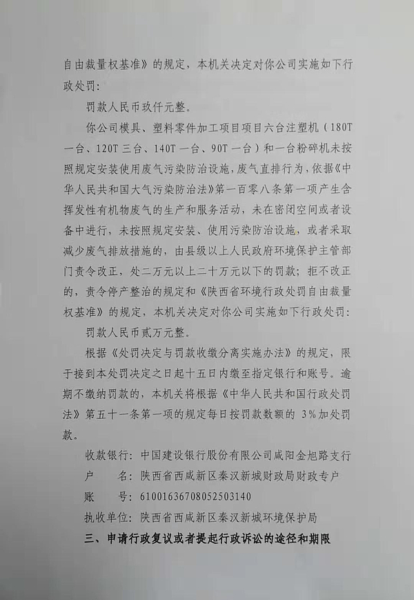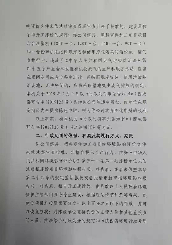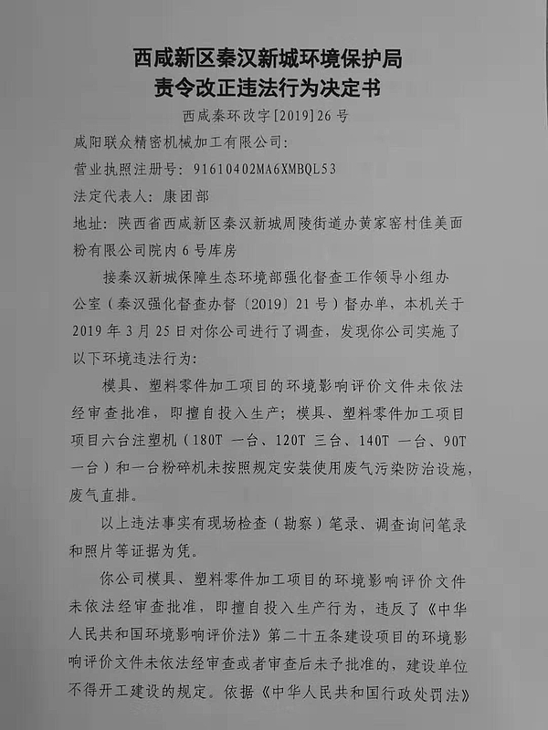 咸阳联众精密机械加工有限公司行政处罚决定书