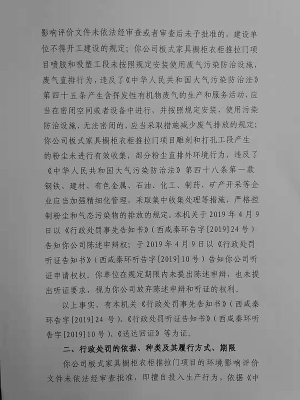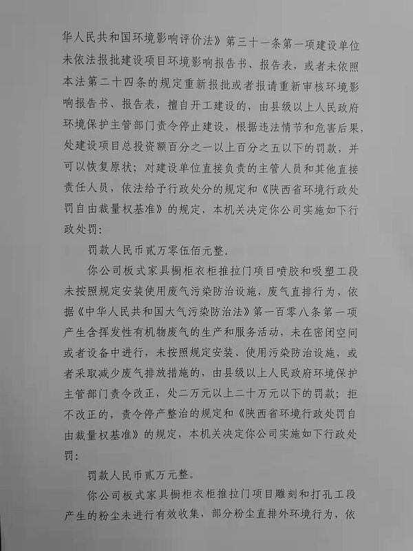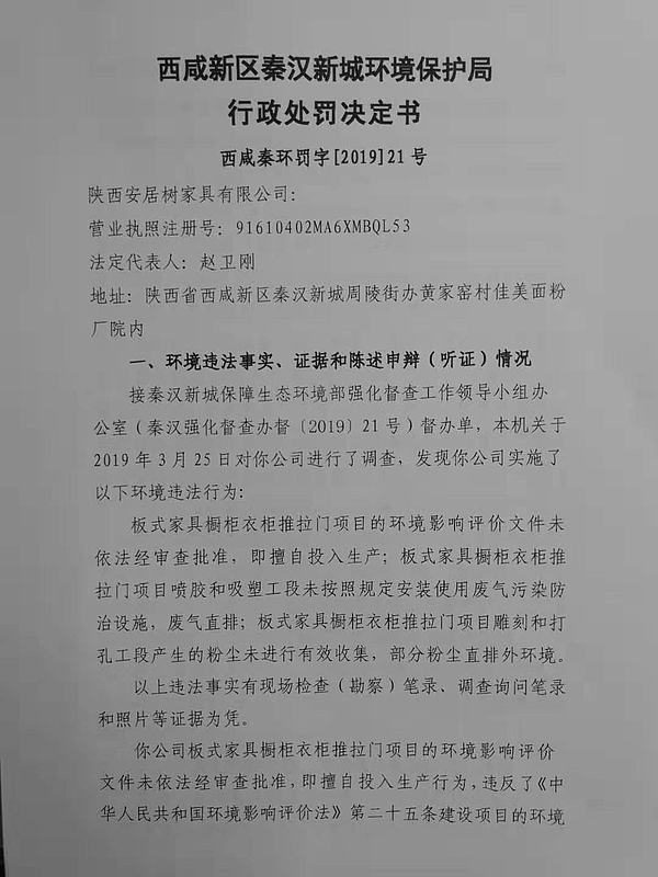 陕西安居树家具有限公司行政处罚决定书
