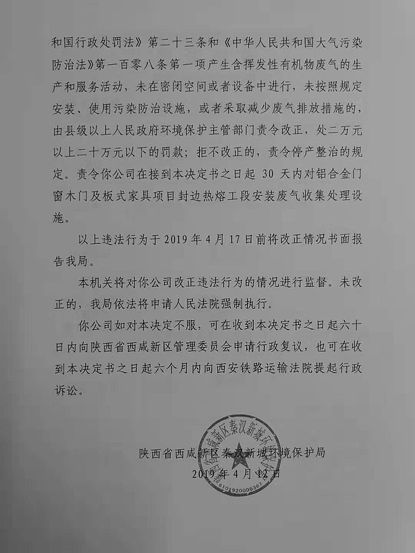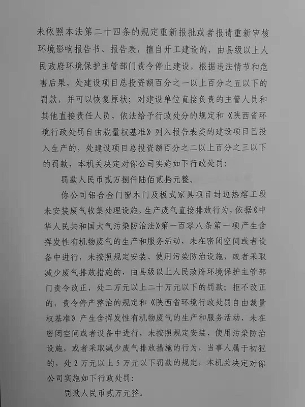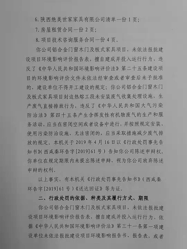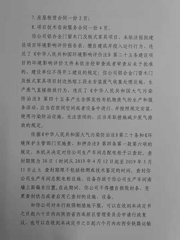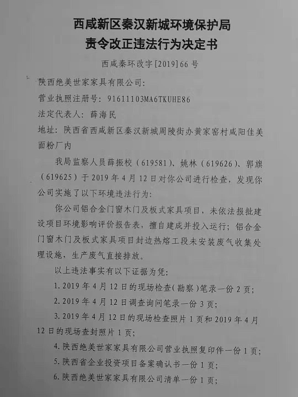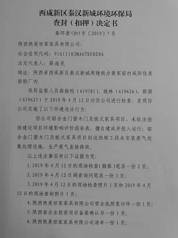 陕西绝美世家家具有限公司行政处罚和查封决定书