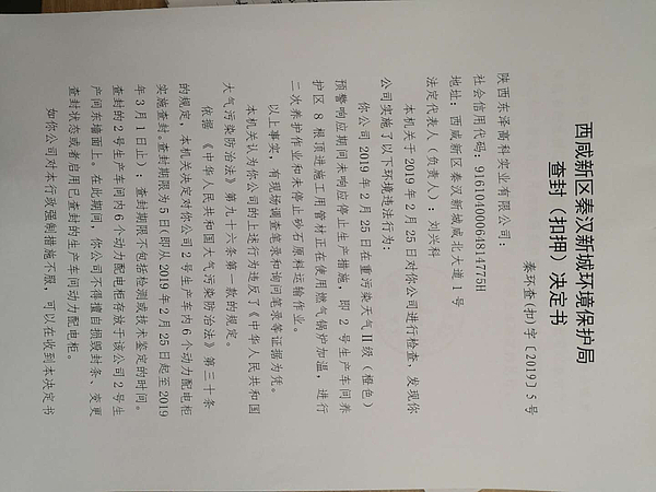 陕西东泽高科实业有限公司查封(扣押)决定书