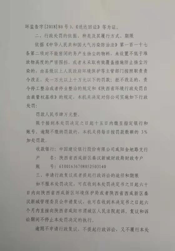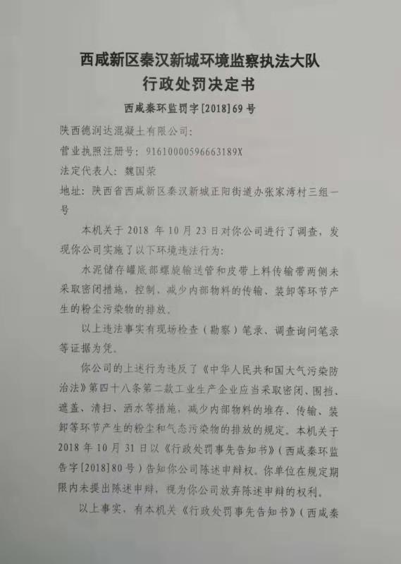 陕西德瑞达混凝土有限公司行政处罚决定书