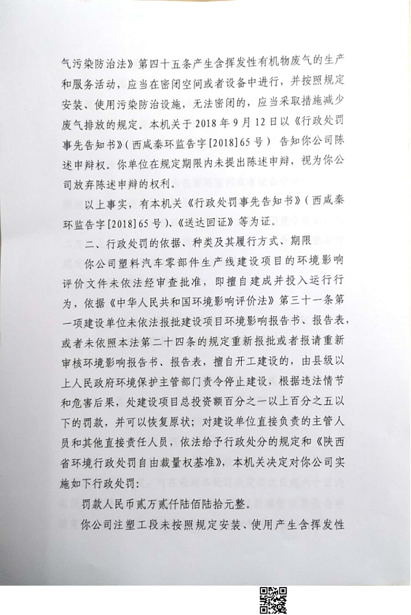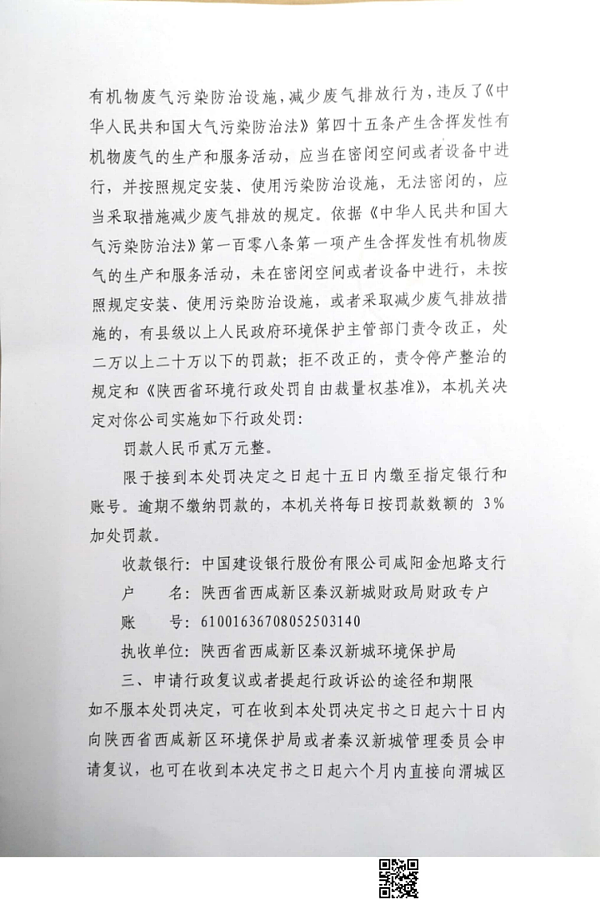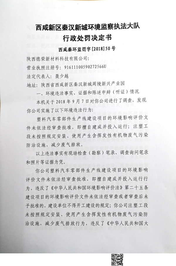 陕西德容新材料科技有限公司行政处罚决定书