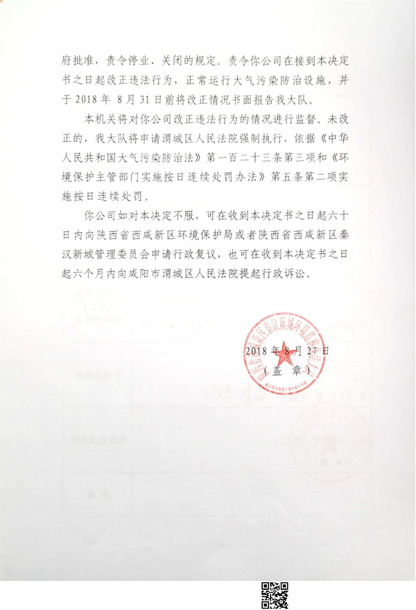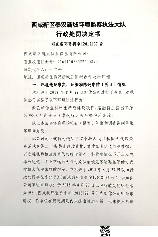 西咸新区远大防腐保温有限公司行政处罚决定书
