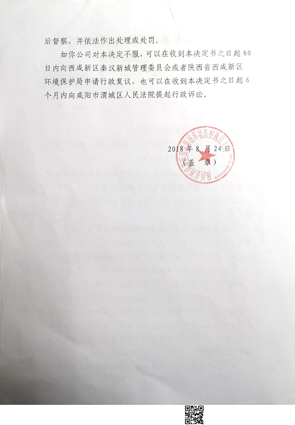 中玻(陕西)新技术有限公司(停产整治)决定书公示