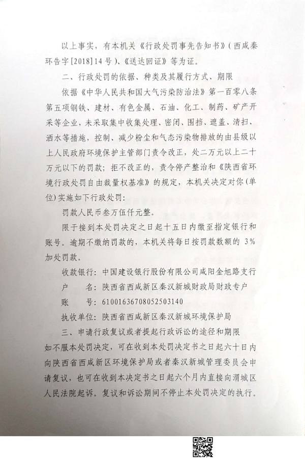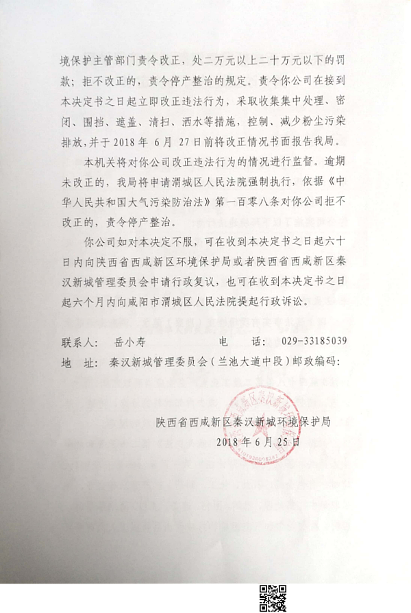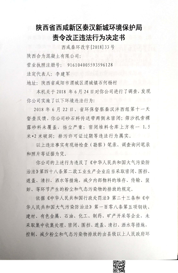 陕西合为混凝土有限公司行政处罚决定书