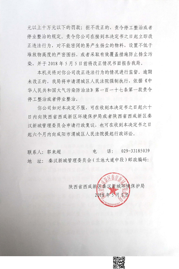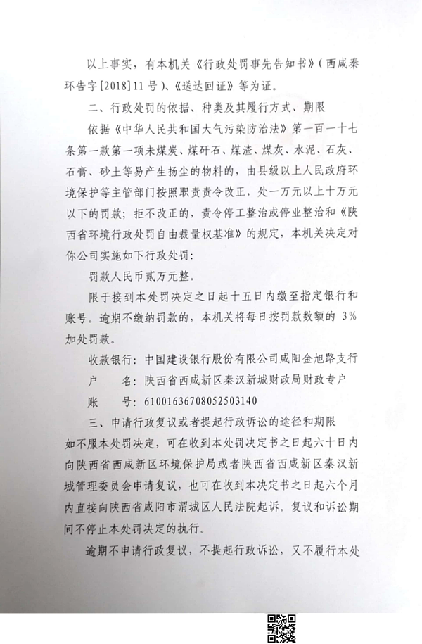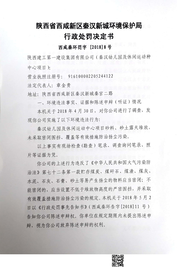 陕西建工第一建设集团有限公司行政处罚决定书