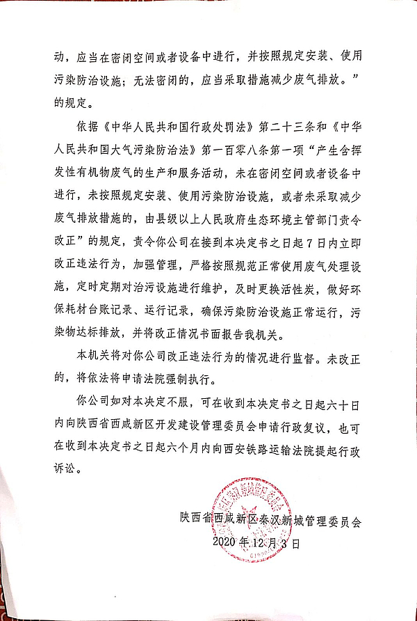 陕西优顺赛辉新能源科技有限公司责令改正环境违法行为决定书
