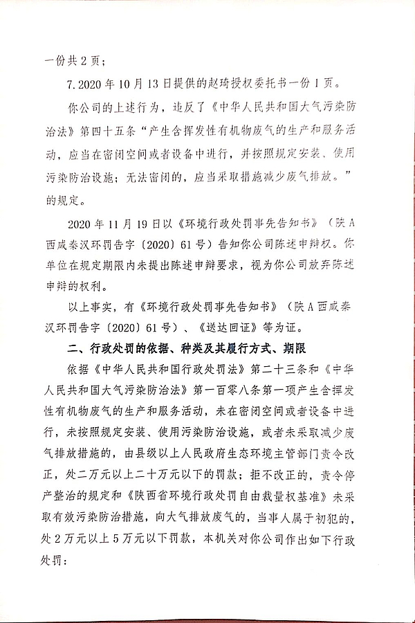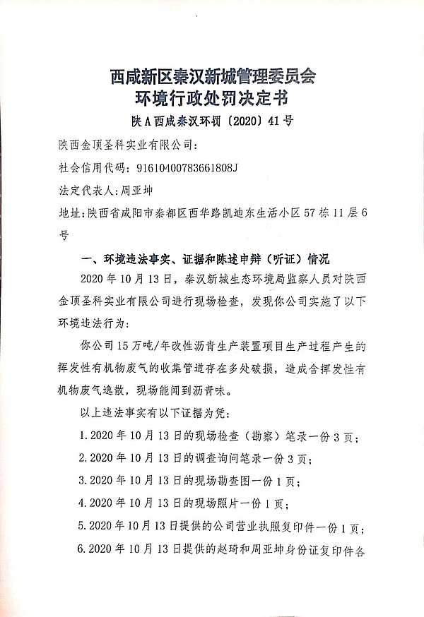 陕西金顶圣科实业有限公司环境行政处罚决定书