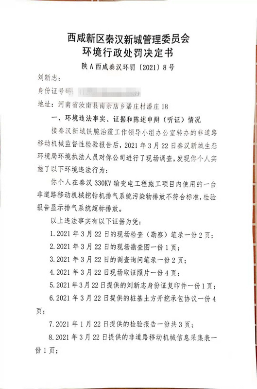刘新志环境行政处罚决定书和责令改正环境违法行为决定书