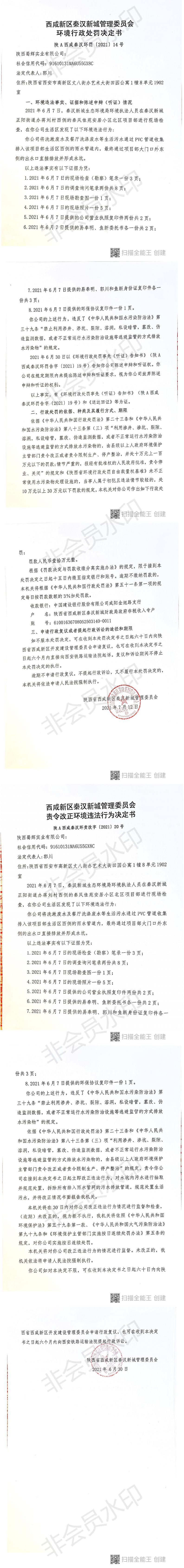 陕西蜀辉实业有限公司环境行政处罚决定书和责令改正环境违法行为决定书