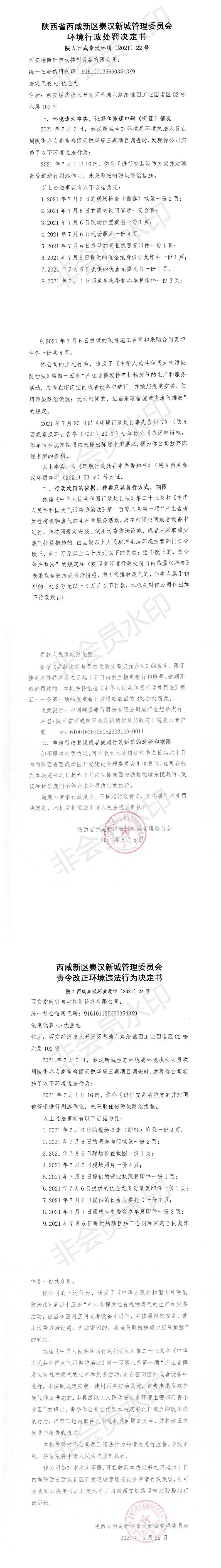 西安指南针自动控制设备有限公司环境行政处罚决定书和责令改正环境违法行为决定书