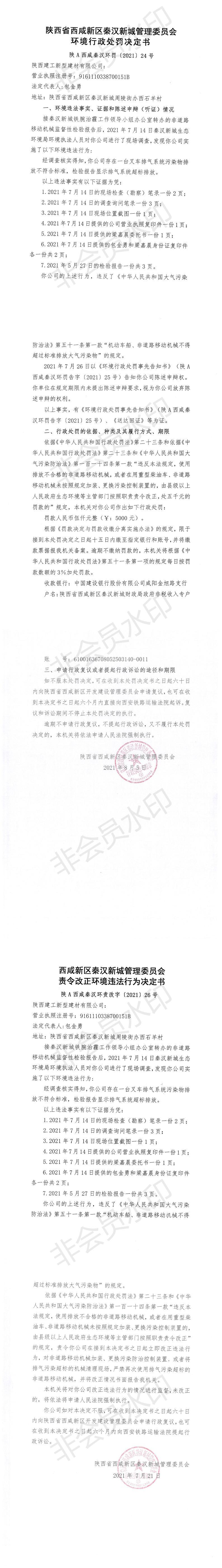 陕西建工新型建材有限公司环境行政处罚决定书和责令改正环境违法行为决定书