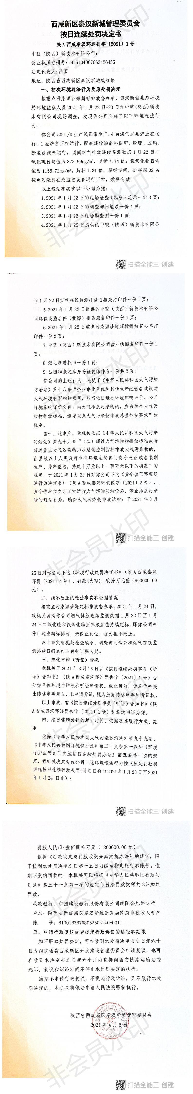 中玻(陕西)新技术有限公司按日连续处罚决定书