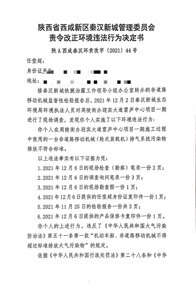 任某超环境行政处罚决定书和责令改正环境违法行为决定书