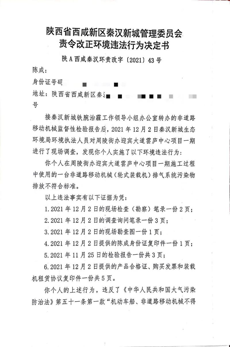 陈某环境行政处罚决定书和责令改正环境违法行为决定书