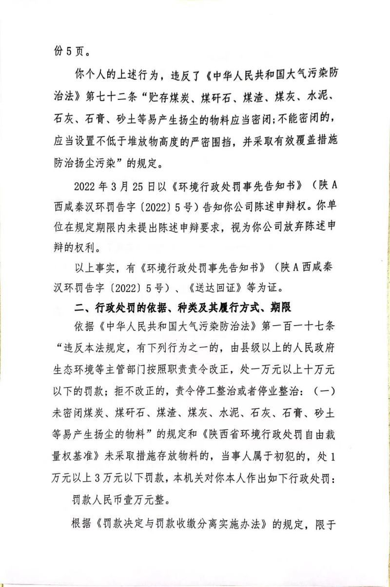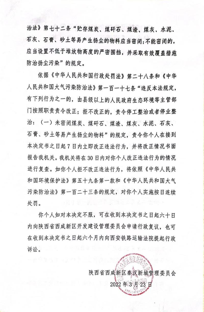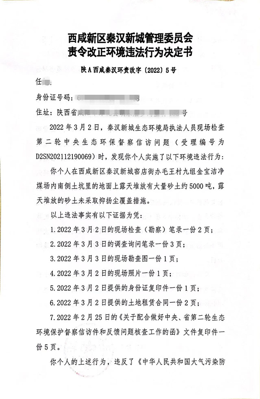 任某环境行政处罚决定书和责令改正违法行为决定书