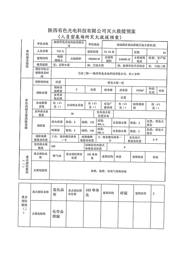 重点单位灭火救援预案(陕西有色光电科技有限公司)